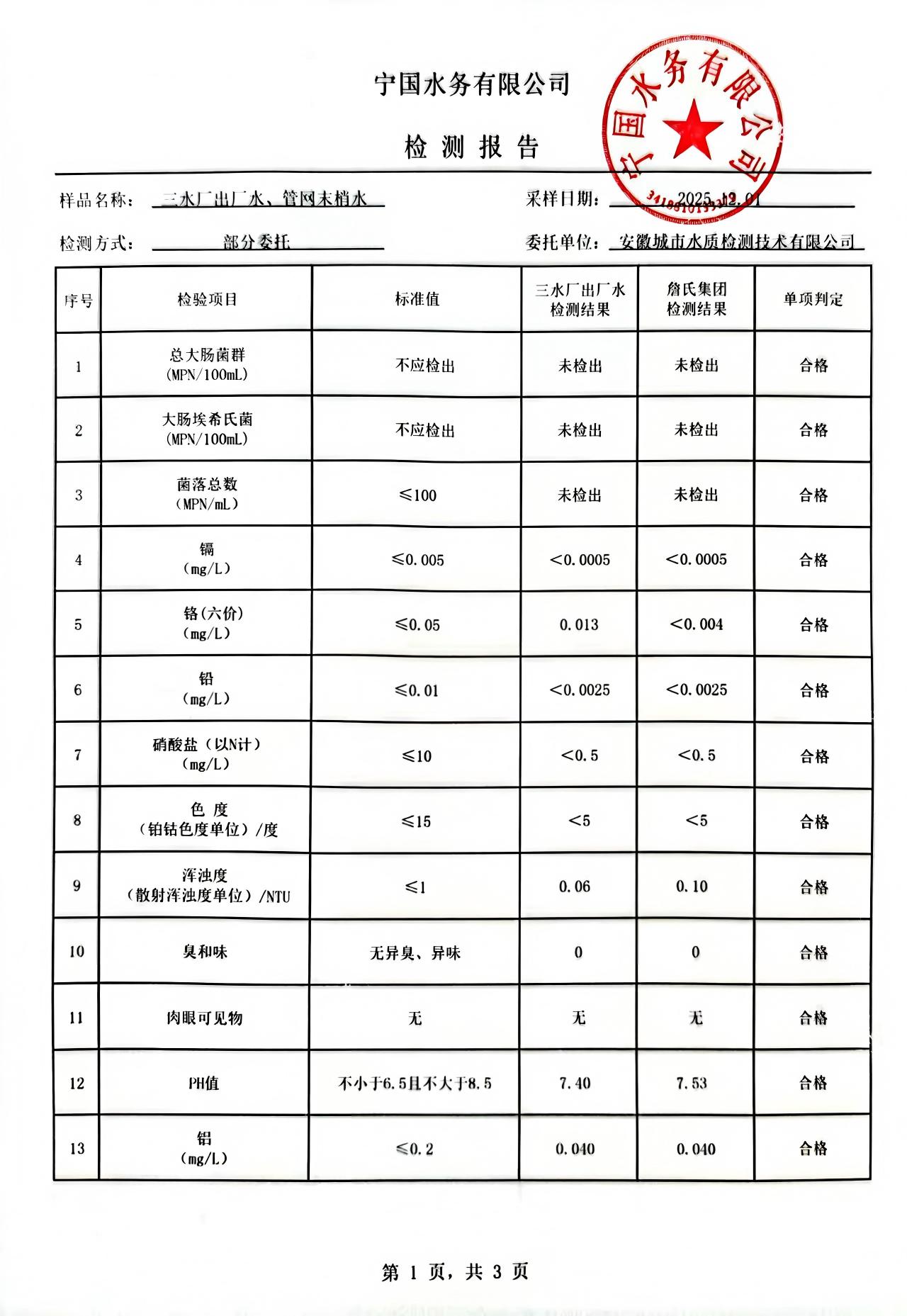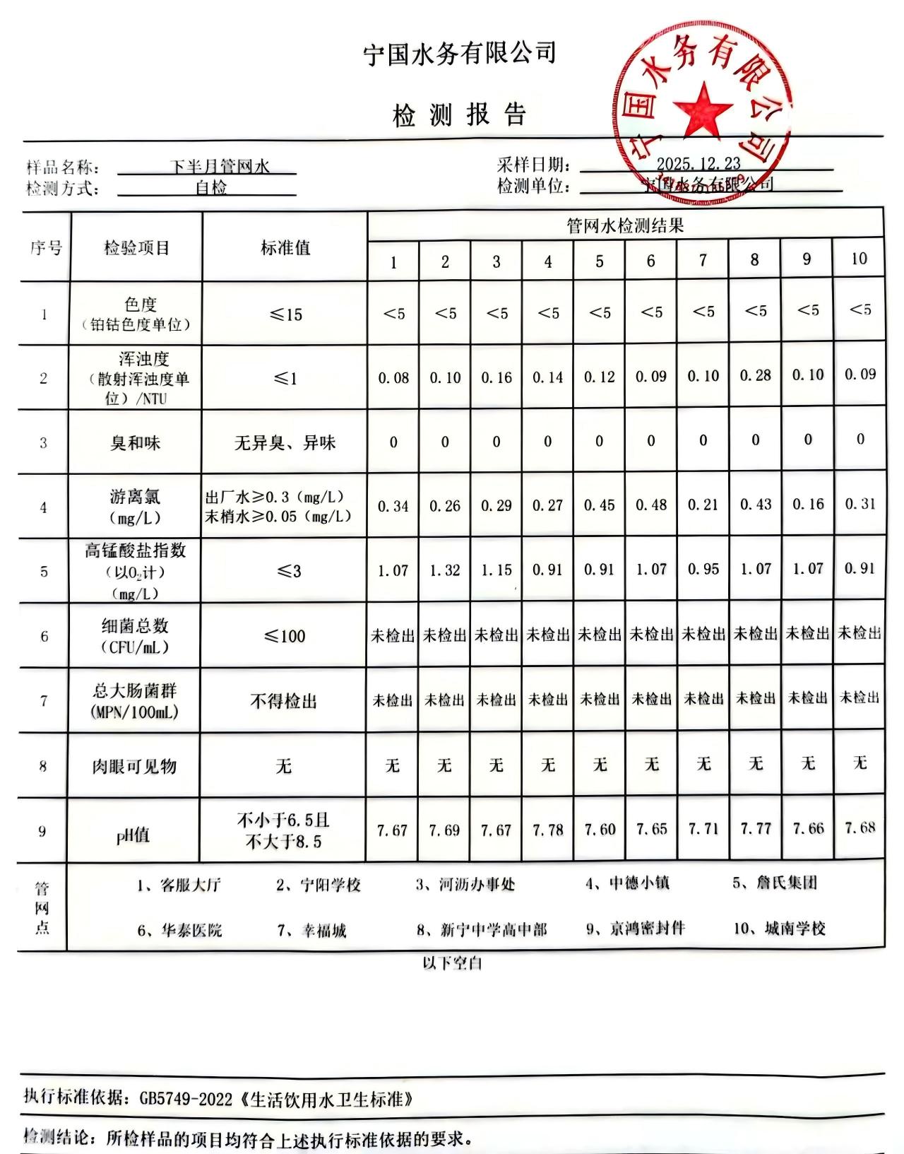 2025年12月份水质报告